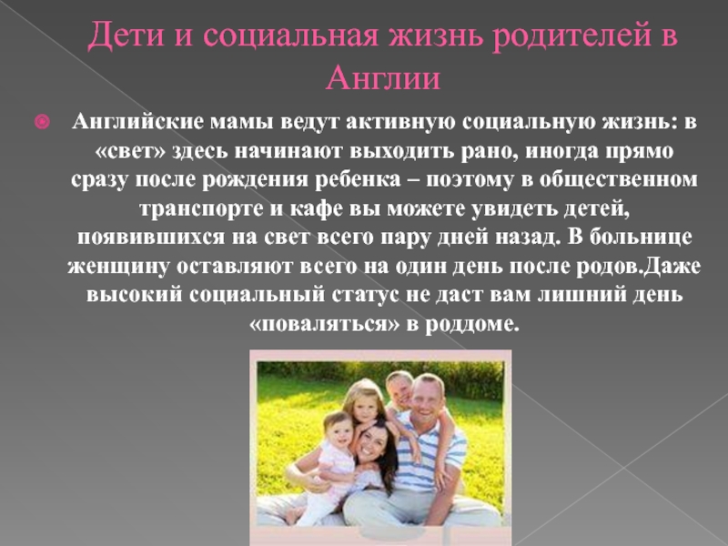 Слайд 7Дети и социальная жизнь родителей в Англии