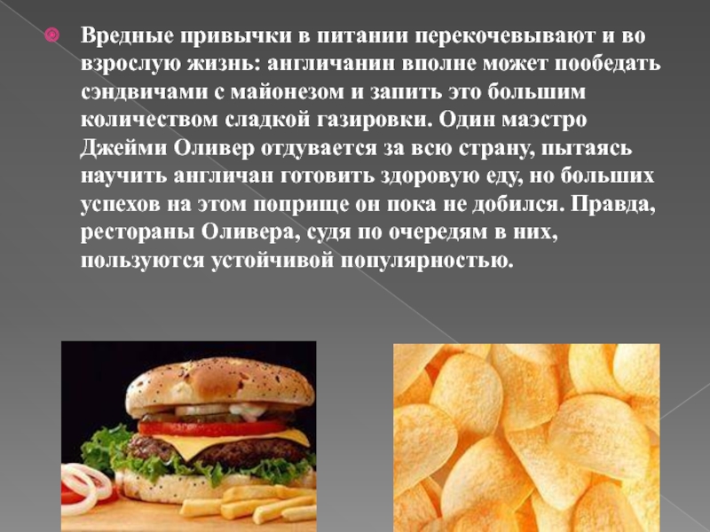 Слайд 18Вредные привычки в питании перекочевывают и во взрослую жизнь: англичанин вполне