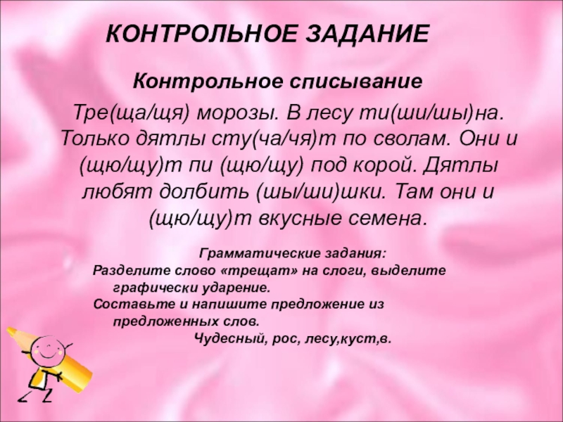 Разделите слово «трещат» на слоги, выделите графически ударение.