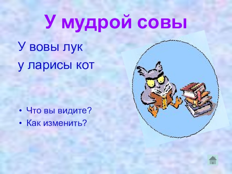 У мудрой совыУ вовы луку ларисы котЧто вы видите?Как изменить?