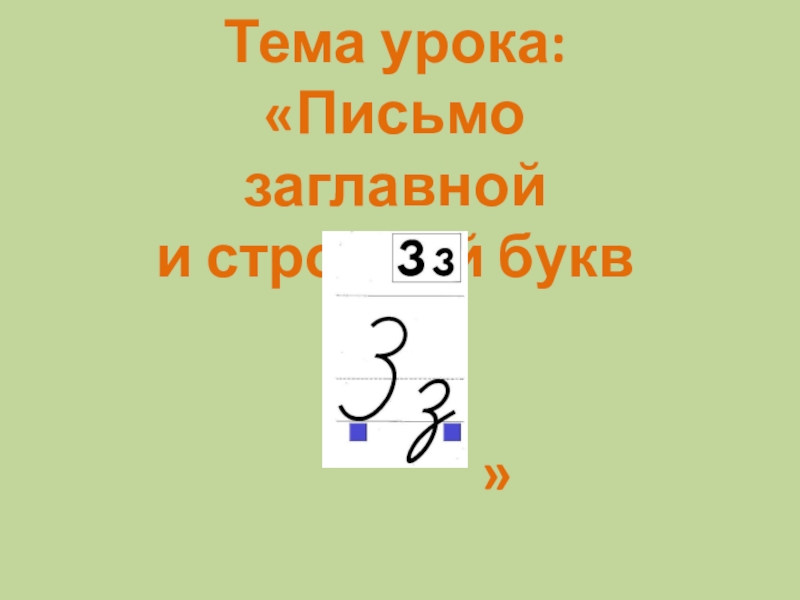 Презентация, доклад по письму на тему Письмо заглавной и строчной букв Зз .