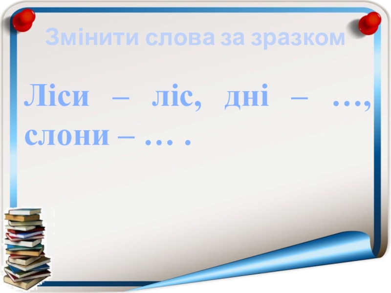Змінити слова за зразкомЛіси – ліс, дні – …, слони – … .