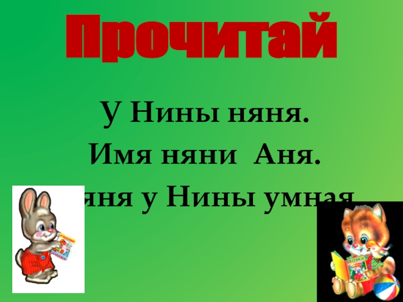 У Нины няня.Имя няни Аня.Няня у Нины умнаяПрочитай