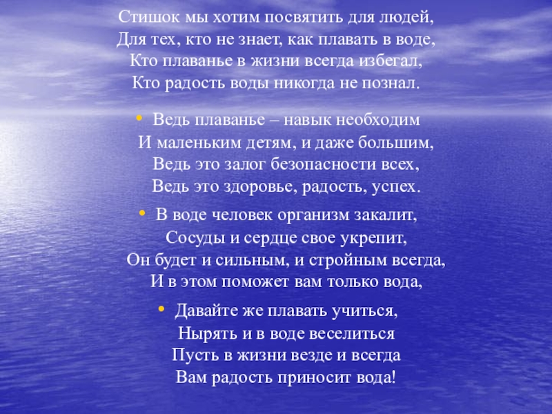 Давайте же плавать учиться,