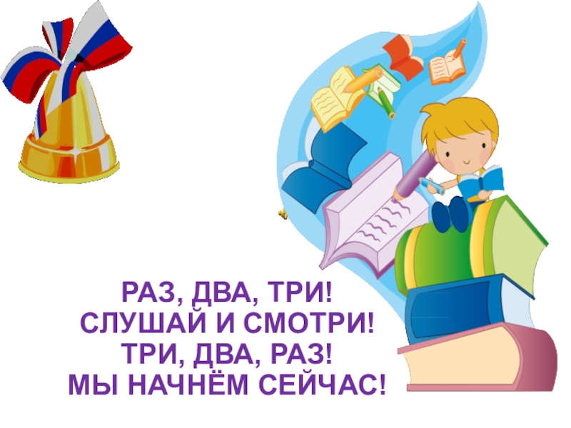 Слайд 1РАЗ, ДВА, ТРИ! СЛУШАЙ И СМОТРИ! ТРИ, ДВА, РАЗ! МЫ НАЧНЁМ СЕЙЧАС!