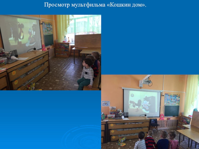 Слайд 8Просмотр мультфильма «Кошкин дом».