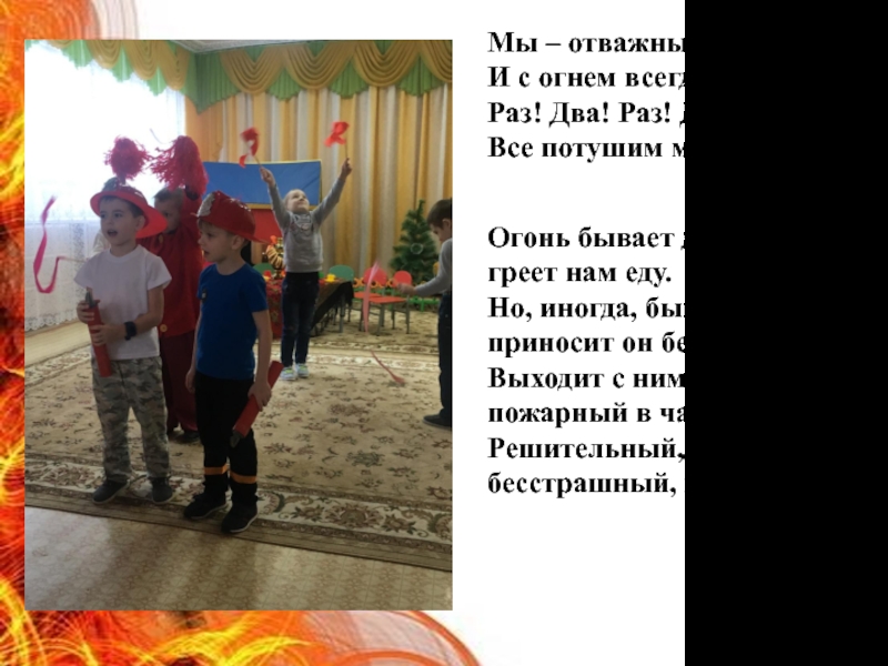 Выходит с ним сражаться пожарный в час любой,