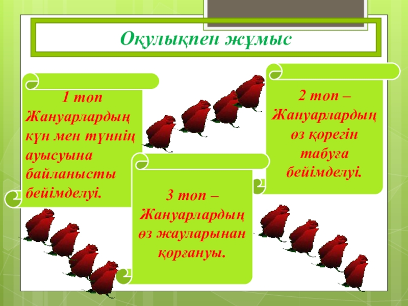 3 топ – Жануарлардың өз жауларынан қорғануы.