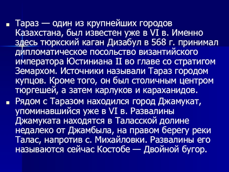 Слайд 26Тараз — один из крупнейших городов Казахстана, был известен уже в