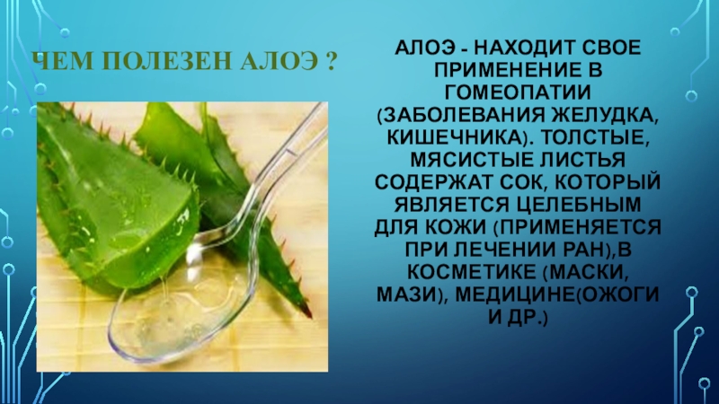ЧЕМ ПОЛЕЗЕН АЛОЭ ?