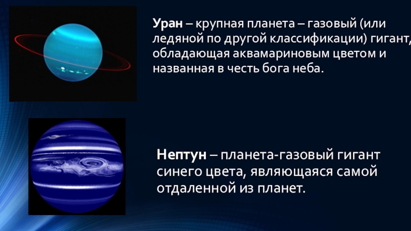 Нептун – планета-газовый гигант синего цвета, являющаяся самой отдаленной из планет.