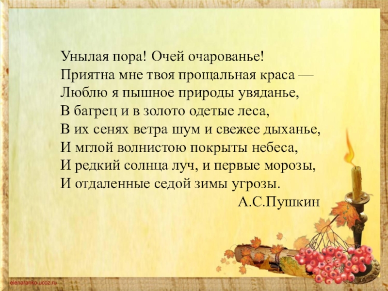 Слайд 2Унылая пора! Очей очарованье!