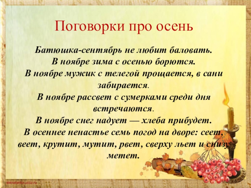 Слайд 4Поговорки про осень