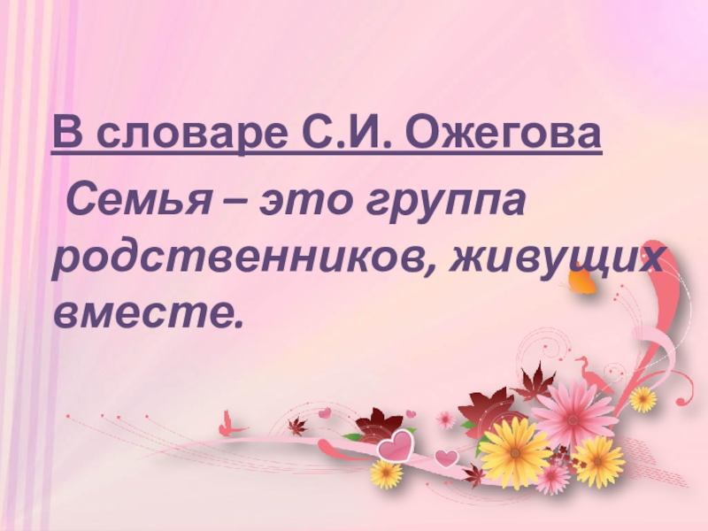 В словаре С.И. Ожегова Семья – это группа родственников, живущих вместе.