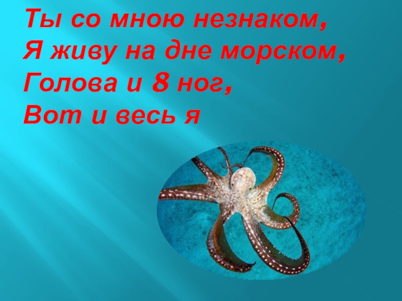 Слайд 15Ты со мною незнаком, Я живу на дне морском, Голова и 8 ног, Вот