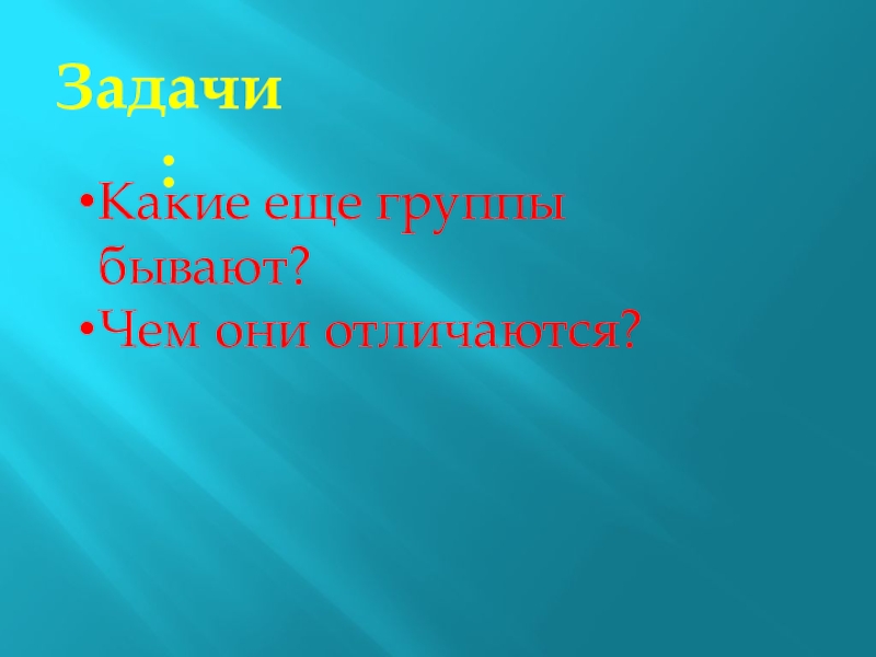 Задачи:Какие еще группы бывают?Чем они отличаются?