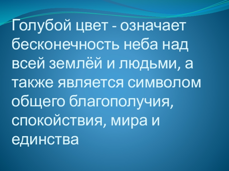 Слайд 9Голубой цвет - означает бесконечность неба над всей землёй и людьми,