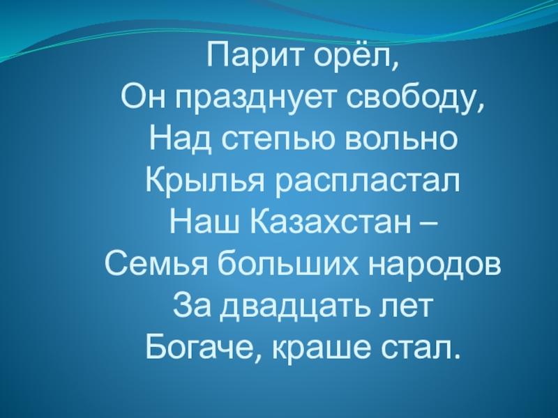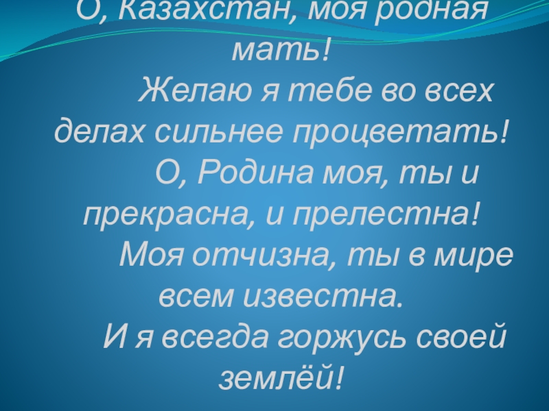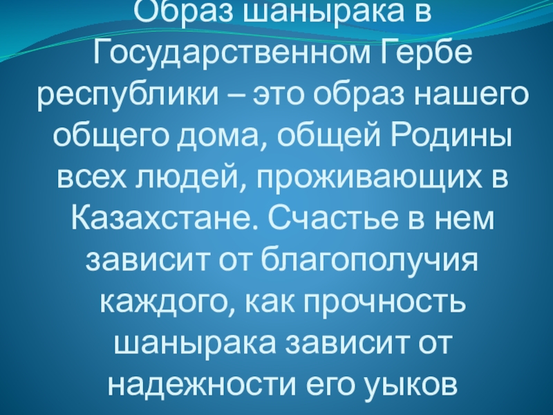 дома, общей Родины всех людей, проживающих в Казахстане. Счастье в нем зависит от благополучия каждого, как прочность шанырака зависит от надежности его уыков