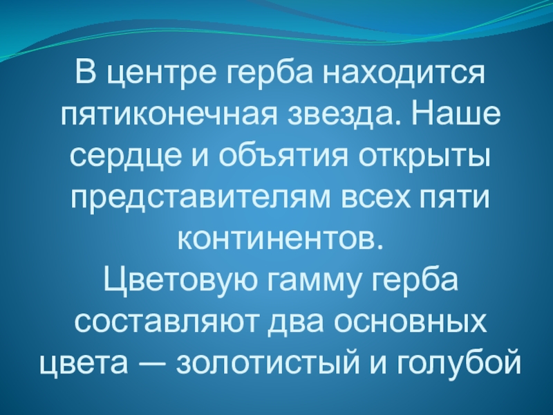 Слайд 18В центре герба находится пятиконечная звезда. Наше сердце и объятия открыты