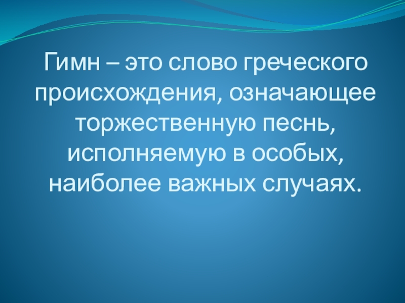 Слайд 20Гимн – это слово греческого происхождения, означающее торжественную песнь, исполняемую в