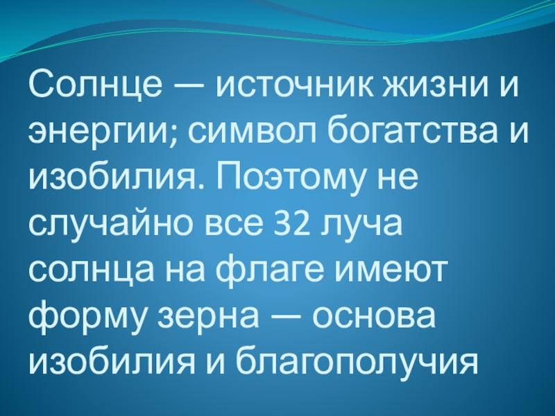 не случайно все 32 луча солнца на флаге имеют форму зерна — основа изобилия и благополучия