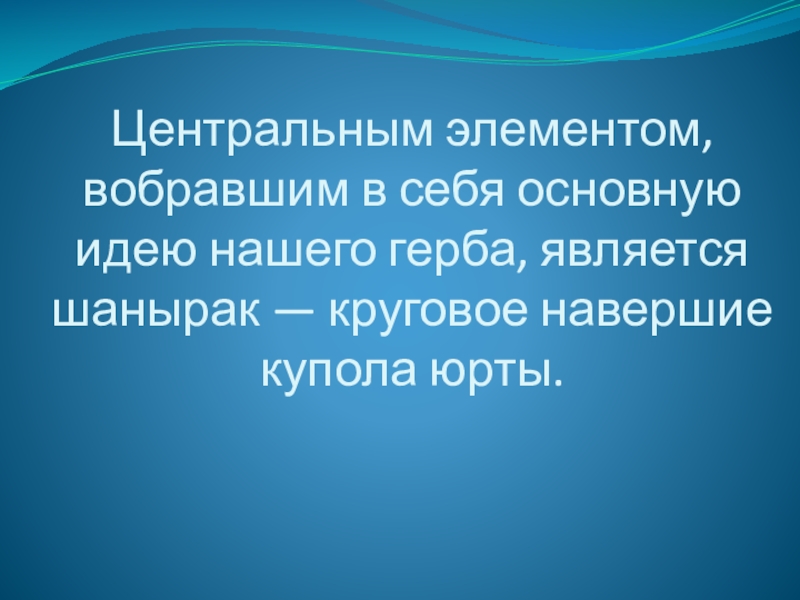 Слайд 15Центральным элементом, вобравшим в себя основную идею нашего герба, является шанырак