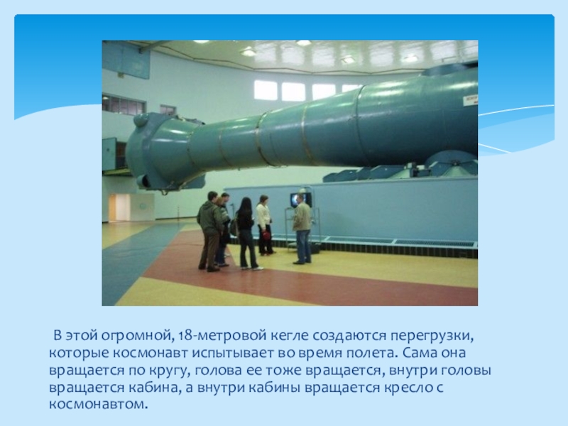 Слайд 12 В этой огромной, 18-метровой кегле создаются перегрузки, которые