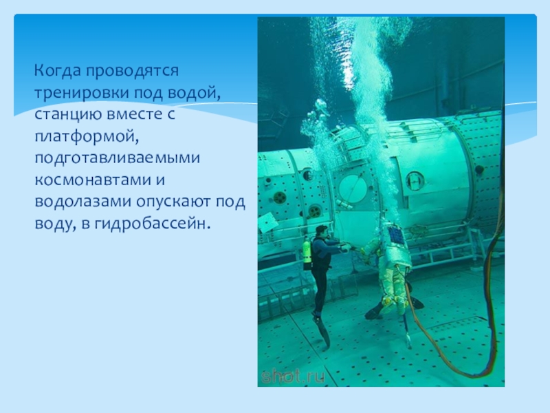 Слайд 13 Когда проводятся тренировки под водой, станцию вместе с платформой,
