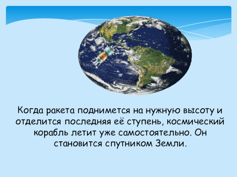 Слайд 19Когда ракета поднимется на нужную высоту и отделится последняя её ступень,
