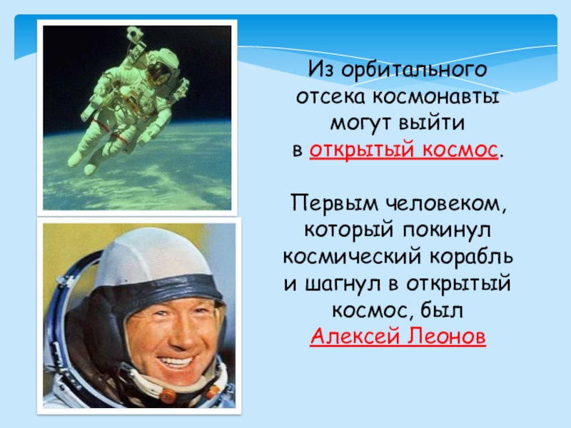 Слайд 23Из орбитального отсека космонавты могут выйти