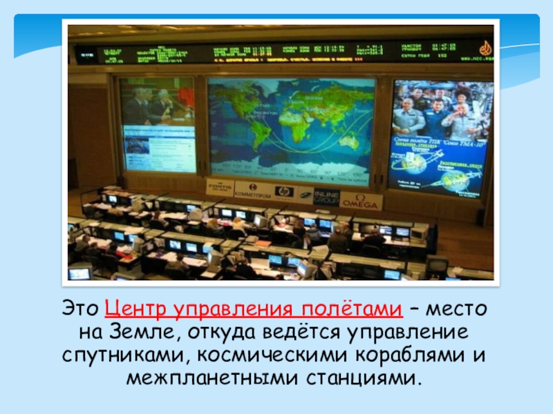 Слайд 24Это Центр управления полётами – место на Земле, откуда ведётся управление