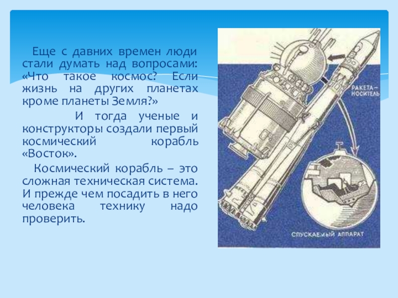 И тогда ученые и конструкторы создали первый космический корабль «Восток».