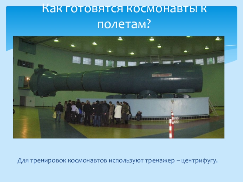 Для тренировок космонавтов используют тренажер – центрифугу.