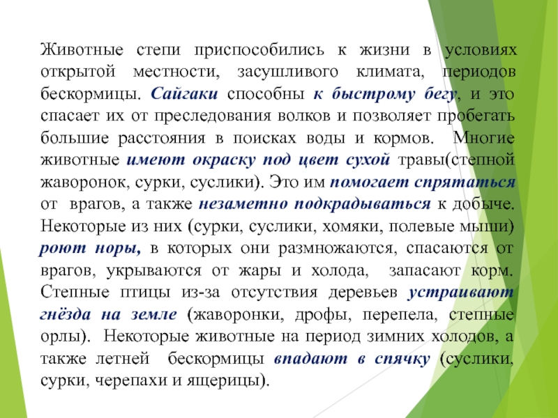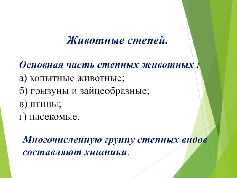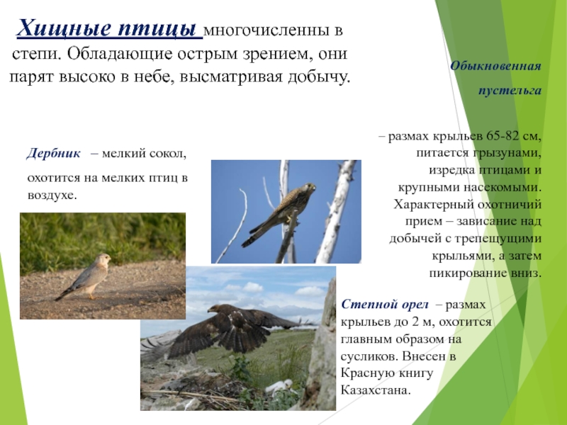 Многочисленную группу степных видов составляют хищники.