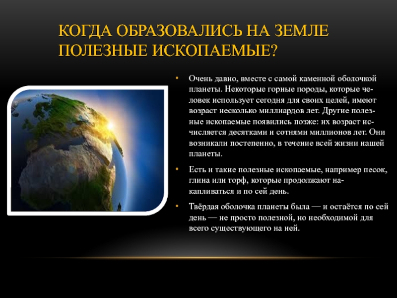 Слайд 3Когда образовались на Земле полезные ископаемые?