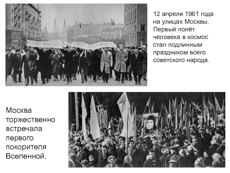 Москва торжественно встречала первого покорителя Вселенной.