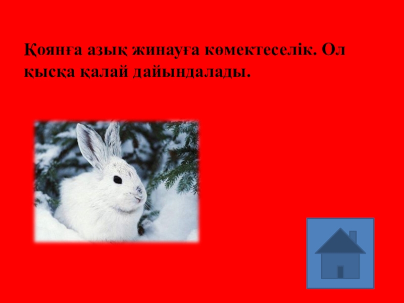 Слайд 32Қоянға азық жинауға көмектеселік. Ол қысқа қалай дайындалады.