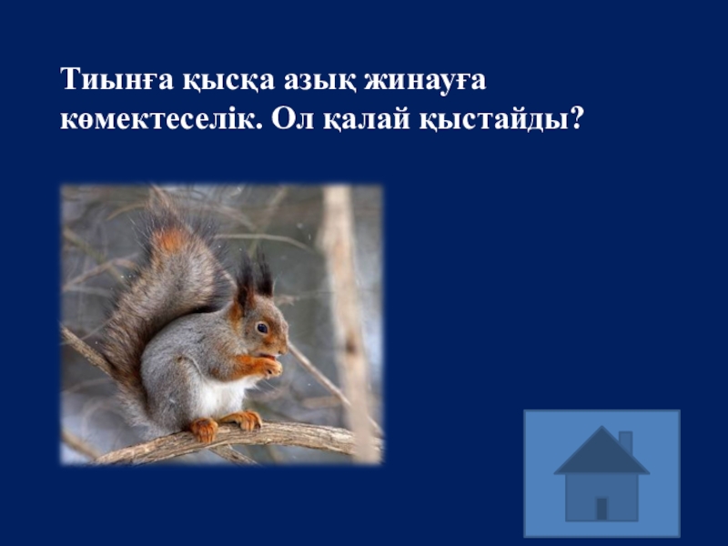 Слайд 33Тиынға қысқа азық жинауға көмектеселік. Ол қалай қыстайды?