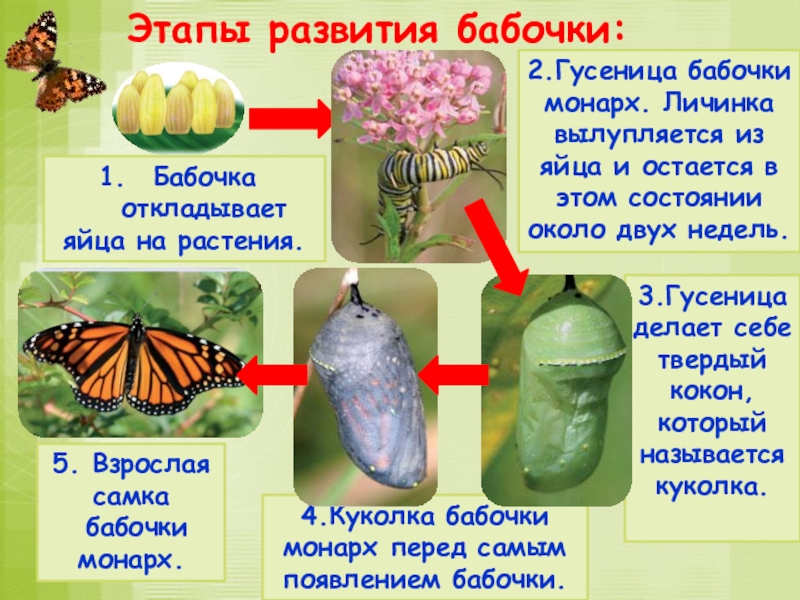 Этапы развития бабочки: