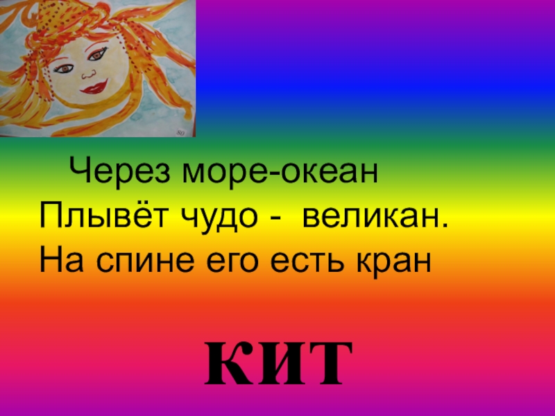 кит  Через море-океан  Плывёт чудо - великан.  На спине его есть кран
