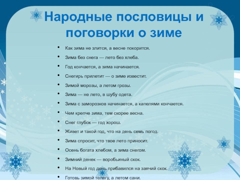 Я зиму вам даю по воле вышних,