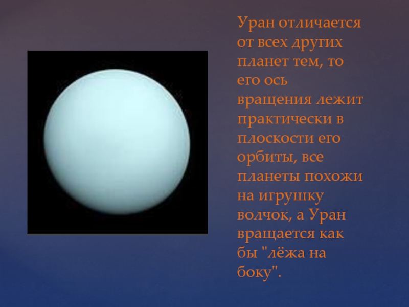 Слайд 8Уран отличается от всех других планет тем, то его ось вращения