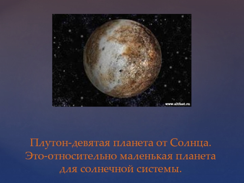 Слайд 11Плутон-девятая планета от Солнца. Это-относительно маленькая планета для солнечной системы.