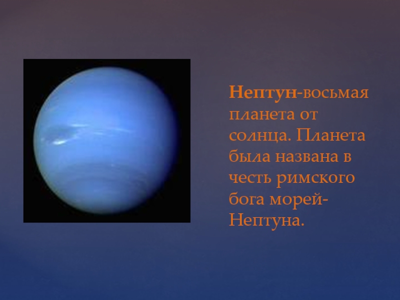 Слайд 10Нептун-восьмая планета от солнца. Планета была названа в честь римского бога