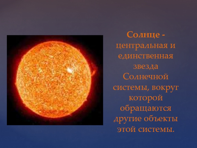 Слайд 3Солнце -центральная и единственная звезда Солнечной системы, вокруг которой обращаются другие