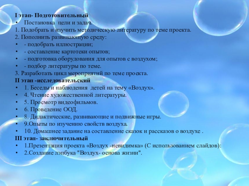 1.Презентация проекта «Воздух -невидимка» (С использованием слайдов):