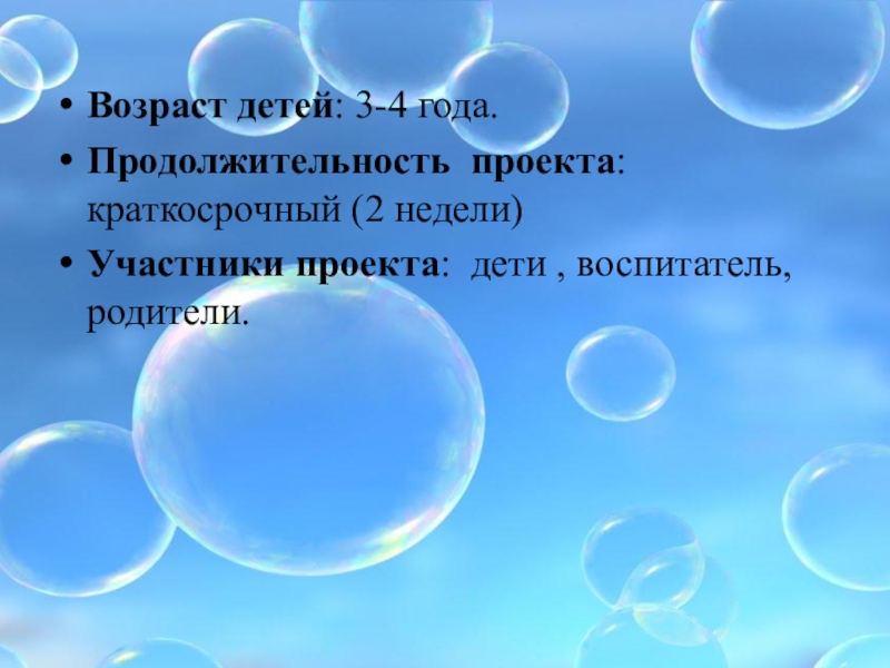 Возраст детей: 3-4 года.Продолжительность проекта: краткосрочный (2 недели) Участники проекта: дети , воспитатель, родители.