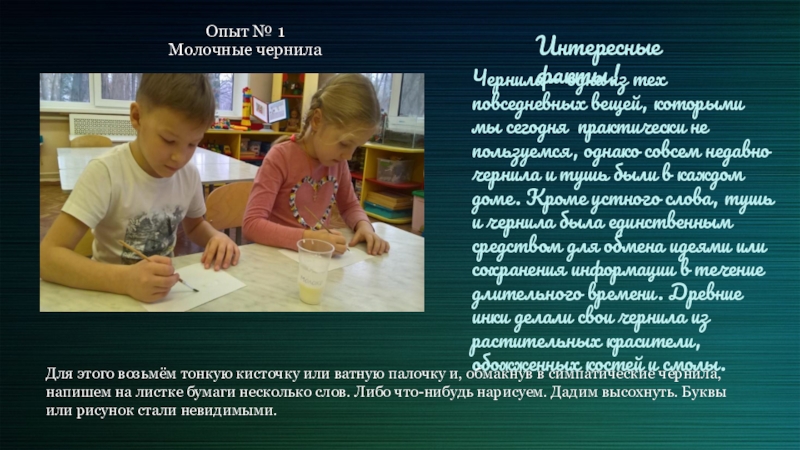 Бумага, стаканчики для жидкости, молоко, вода лимонный сок, сода, кисточки, утюг.