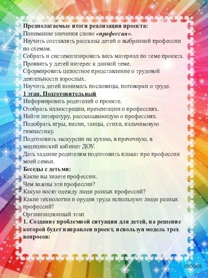 Проблема: Из беседы с детьми стало понятно, что они имеют поверхностные представления о профессиях, поэтому решили познакомить детей с профессиями поближе: