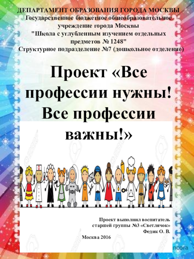 Структурное подразделение №7 (дошкольное отделение) Проект «Все профессии нужны!